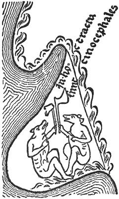 [367] This astonishing etymological explanation of the ancient Phœnician legendary islands of the Hesperides is evidently due to a confusion of Brandan’s sheep-island with Pliny’s statements [Nat. Hist., vi. 36] about the purple islands off Africa (near the Hesperides) which King Juba was said to have discovered, and where he learned dyeing with Gætulian purple. The idea that the sunken land Atlantis was where the “Concretum Mare” now is may be connected with the Greek myth which appears in Plutarch (see above, pp. 156 and 182) of Cronos lying imprisoned in sleep on an island in the north-west in the Cronian Sea (== “Mare Concretum”), where also the great continent was, and where the sea was heavy and thick.