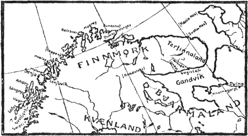 [386] The names Finmark (the land of the Finns or Lapps) and Finland were often confused in the Middle Ages (cf. Geographia Universalis, Eulogium, Polychronicon, Edrisi), and the latter again with Wineland (cf. Ordericus Vitalis, Polychronicon). It should be remarked that Adam does not know the name “Finn,” but only “Finnédi” and “Scritefini.”