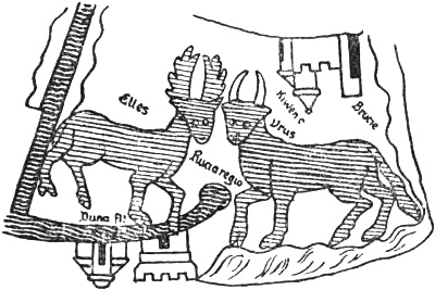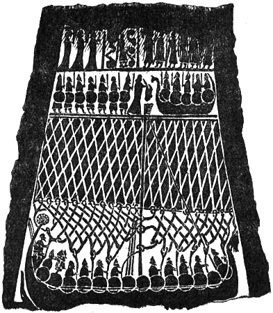 [342] It is stated in an Irish legend that the hero Ciaban went as an exile to “Trág in-Chairn” (the strand of cairns) [cf. Zimmer, 1889, p. 271]. This might remind us of Helluland (?).