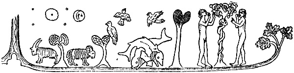 [348] To these wine-fruits in the “Imram Maelduin” correspond, perhaps, the white and purple-red “scaltæ,” which in the “Navigatio Brandani” cover the low island, bare of trees, called the “Strong Men’s Island” [Schröder, 1871, p. 24]. Brandan pressed one of the red ones, “as large as a ball,” and got a pound of juice, on which he and his brethren lived for twelve days. It might be supposed that these white and red “scaltæ” from the flat ocean-island were connected with Lucian’s water-fishes (which seem to have been white) and wine-fishes (which had the purple colour of wine) (see above). The meaning of “scaltæ” (“scaltis”) is uncertain. Schröder says “sea-snails”; Professor Alf Torp thinks it may be a Celtic word, and mentions as a possibility “scalt” (== “cleft”). In that case it might be a mussel, which is “cleft” in two shells.