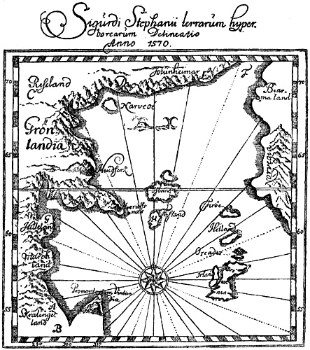 [266] It is worth remarking that Clavus puts his last point visible no less than 1° 50′ (that is, 110 nautical miles) to the north of the limit of the known land. If a statement like this was calculated to be taken as derived from local knowledge, it would not in any case disclose much nautical experience.