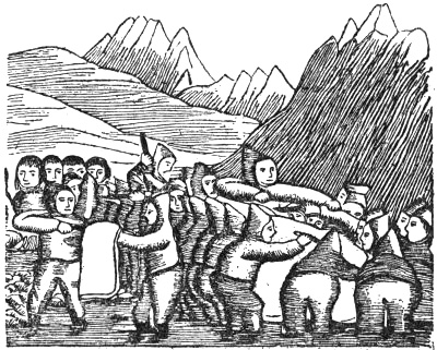 [349] That the Eskimo lived in caves in the mountains or underground was a not uncommon idea even in later times; see, for instance, Wilhelmi: Island, Hvitramannaland, Grönland und Finland, 1842, p. 172.