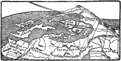 [270] According to Lelewel [Epilogue, Pl. 6] this peninsula bears the name of “Grinland,” but this cannot be seen on the somewhat indistinct original [cf. Björnbo, 1910, p. 80; Ongania, Pl. X.].