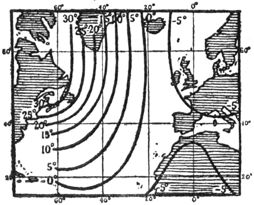 [353] Owing to the compass error varying in the course of the voyage, the courses sailed will be more nearly parts of a great circle.