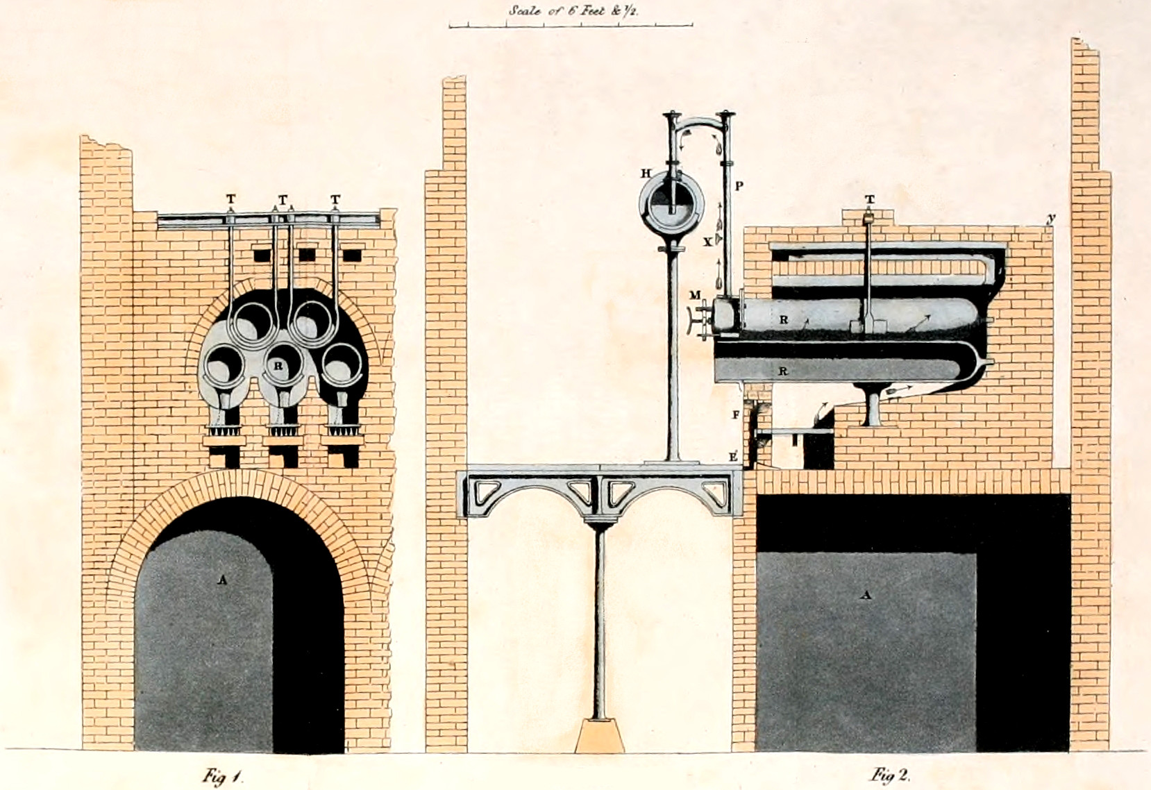 In the fourth part, I have given a description of all the various forms and dimensions which the distillatory vessels or retorts have successively assumed, as well as of the improvements that have been made in the mode of setting the retorts, with a view to saving them from undue deterioration, and preventing any improvident waste of fuel. I have here given a particular account of the distillatory apparatus now used at the most celebrated gas works in the metropolis.