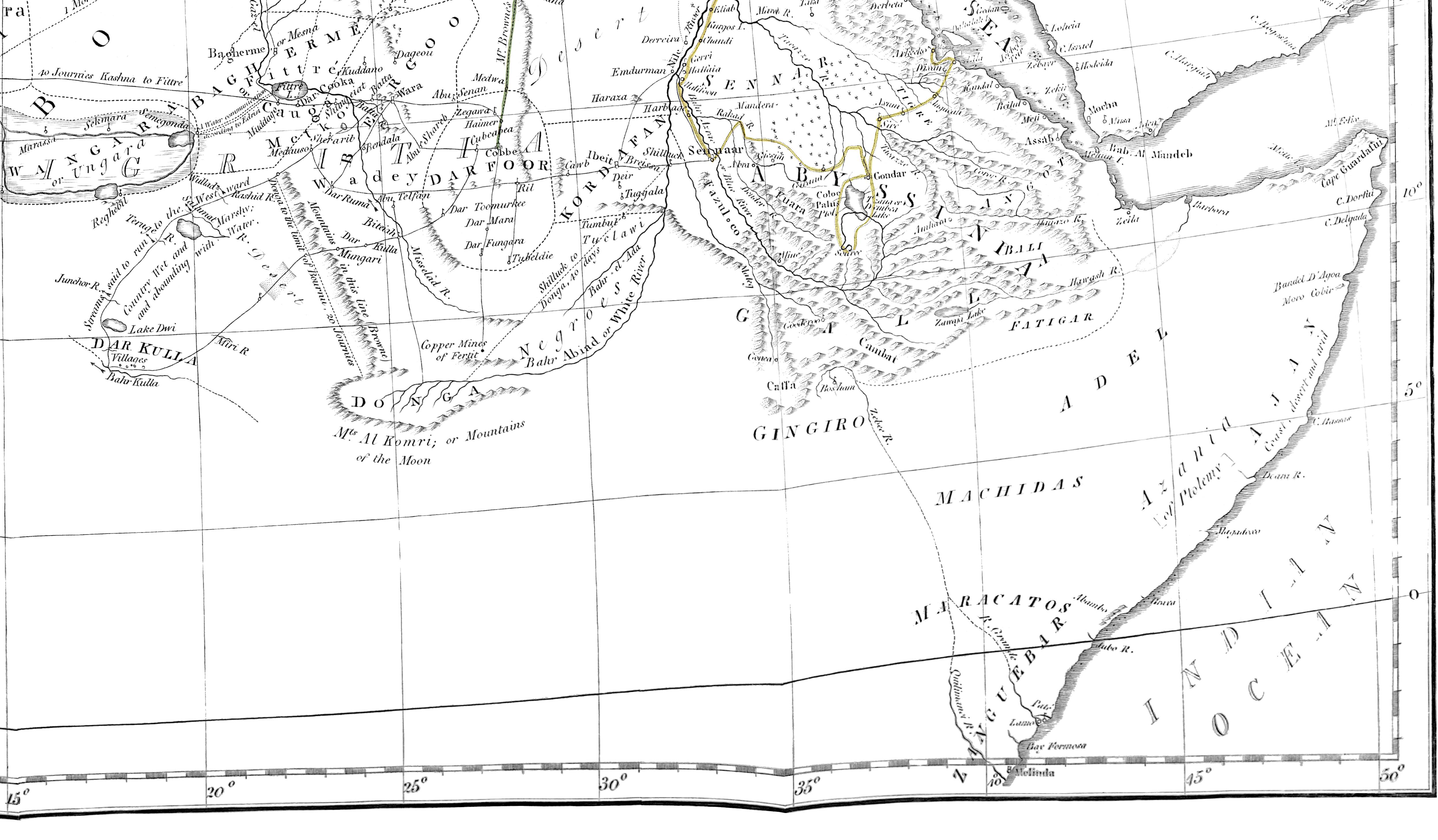 At outset of the Society instituted for the purpose of exploring the Interior of Africa, it might have been proper to set forth, in glowing colours, all that was rumoured, and all that might be expected; well were general reports and ingenious inferences suited to rouze curiosity, to excite adventurous spirit, and to give a spring to the first movements and purposes of the Institution.