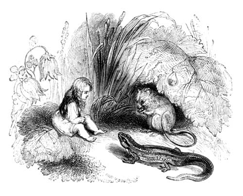 And as the Child sat there, a little mouse rustled from among the dry leaves of the former year, and a lizard half glided from a crevice in the rock, and both of them fixed their bright eyes upon the little stranger; and when they saw that he designed them no evil, they took courage and came nearer to him.