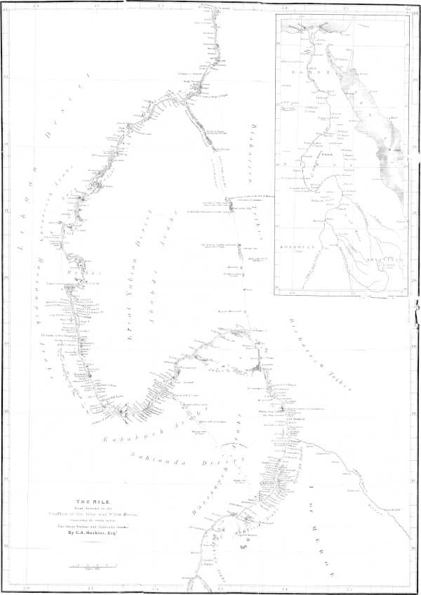| Commencement of the Journey across the Great Nubian Desert. — Description of the Caravan. — Advantages of Turkish Dress and Customs. — Provisions necessary for the Desert. — Akaba, or Mountain Passes. — Dead Camels. — Fear of Robbers. — Anxiety about the Stock of Water. — Arab Opinion of Travellers. — Alarming Diminution of our Water. — Dead Bodies of Slaves and Camels. — Hojab el Jenous. — Bab el Korosko. — Age of the Camel. — Bahr Bela Ma, or Sea without Water. — Mirage. — Perils and Charms of the Desert Life. — Dilet el Doom, Valley of the Shade of the Dooms. — Gold Mines. — Omrishi Sufir. — Wells now dry.[x] — El Murrah, or the Well of Bitter Waters. — Hieroglyphics on the Rocks. — Colony of Bishareen. — Height and Character of the Mountains. — Arab Songs. — Gazelle. — Danger of leaving Caravan. — Absah Gold Mines. — Storms in the Desert. — Cambyses. — Bruce. — Arab Manner of mounting the Camel. — Manner in which the Arabs repose. — Arrival at the Nile. — Estimate of the Length of the Route and general Pace of the Camel | 17 |