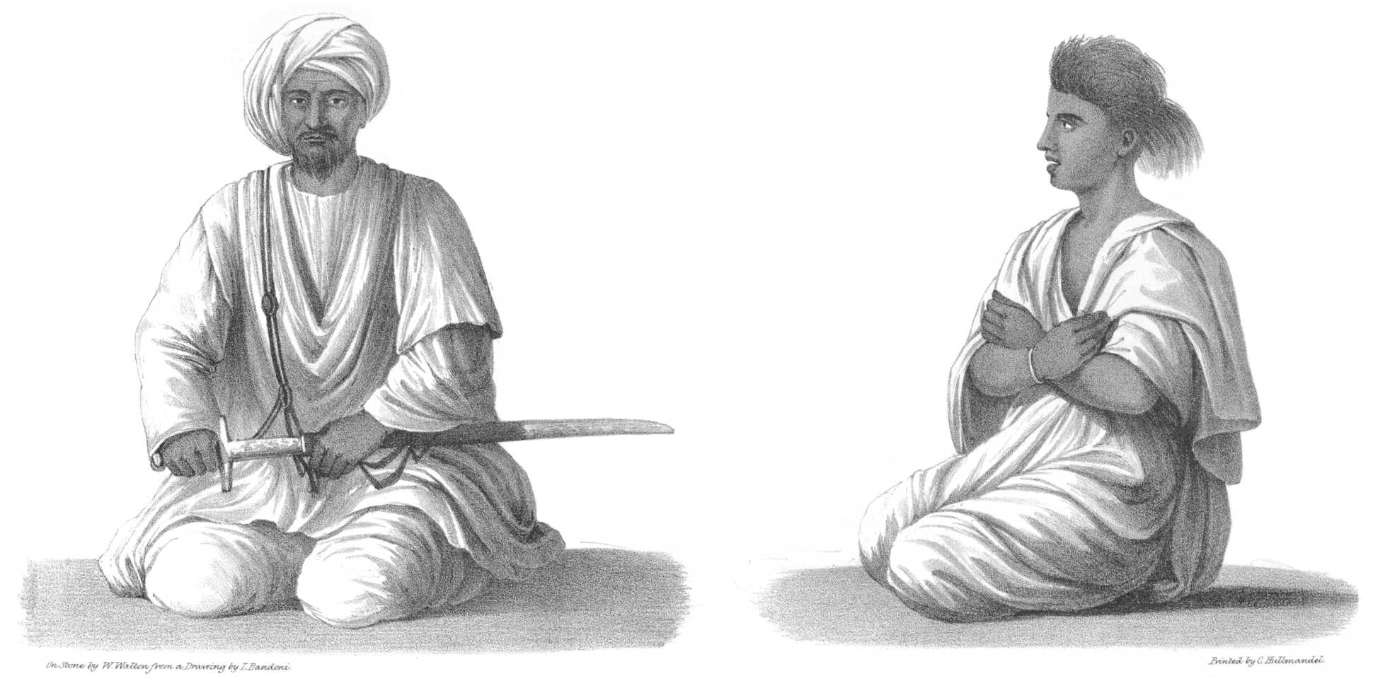 | Metammah. — Difficulty of finding Camels to cross the Bahiouda Desert. — Wretched State of the Peasants when attacked by Illness. — Intermittent Fevers. — Costumes of Metammah. — Women of high Rank. — Their long Nails. — Manner of increasing their Length. — Bahiouda Desert. — Wells at Aboulay. — Reflections on the Desert Life. — Shageea Tribe. — Wells called Gagdool. — Signor B. unwell. — Hassanyeh Tribe. — Animals of the Desert. — Greyhound Dog. — Well of Magaga. — Dangerous Illness of Signor B. — Well of delicious Water called Haless. — Beauty of the Scenery. — Shepherd Boys. — Character of the Rocks. — Wells of good Water called Hannek and Prasoli. — The Manner the Shageea salute. — Coptic Christian Church. — Arrival at the Town of Meroueh. — Hieroglyphics on a Slab in the Castle | 123 |