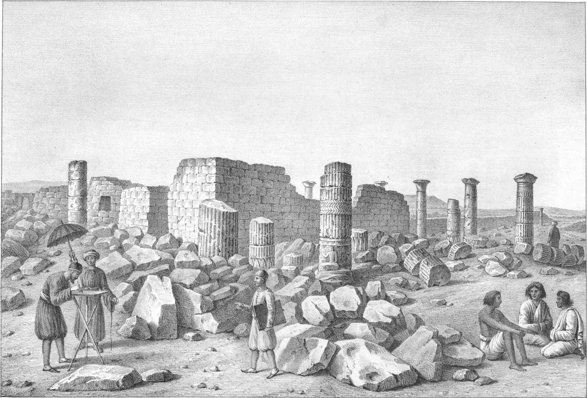Such were the objects which induced the Author to encounter the difficulties and hardships of a journey into the upper valley[vi] of the Nile. It were to be wished, that the task had fallen into abler hands; yet he may be permitted to mention, that he had, to a certain extent, been prepared for it, by a series of years spent in Italy, Sicily, Greece, and other countries, distinguished by splendid remains of antiquity. He resided afterwards for a year in Upper Egypt, delineating its most remarkable edifices, and studying the sculptures and the hieroglyphics. He had thus acquired considerable experience in architectural drawing, and he took care, by the use of the camera lucida, to secure the accuracy of his outline. He had, likewise, the good fortune to engage the services of a very able Italian artist. No spot of any consequence was left till a leisurely and careful delineation had been made of every object of interest which it contained. It is therefore hoped, that a tolerably complete and accurate delineation has now been made of the most important antiquities of Ethiopia.