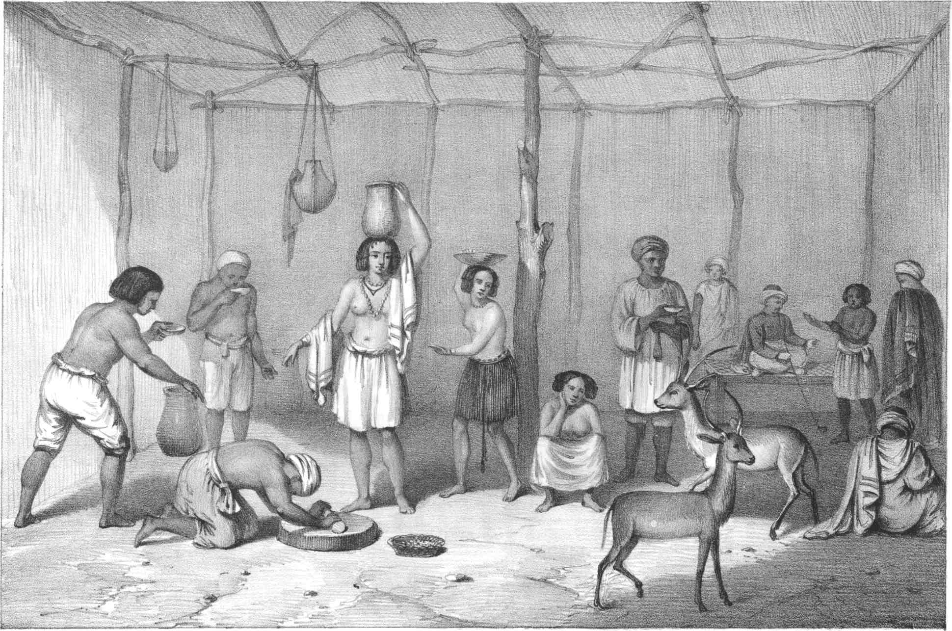 | Visit to the Governor. — Extent of his Government. — Indigo. — Water Wheels. — Population. — Taxes. — Prices of Produce. — Oasis of Dongolah,[xiii] called El Gab. — Route to Kordofan. — Information about that Country. — Baneful Climate. — Captain Gordon. — Arab Tribes of Kordofan. — General Appearance of New Dongolah. — The Bazaar. — Curious Use of Ointment. — Merchandise. — The Bazaar. — Slave Market. — Commerce carried on by Barter. — Curious Manner of effecting Sales. — Dongolah Goldsmith. — Auctioneers. — Various Arab Tribes. — Costumes. — Women, the Elegance of their Attire. — Breaking of the Rat. — Giraffe. — Hassanyeh Tribe. — Elephants | 176 |