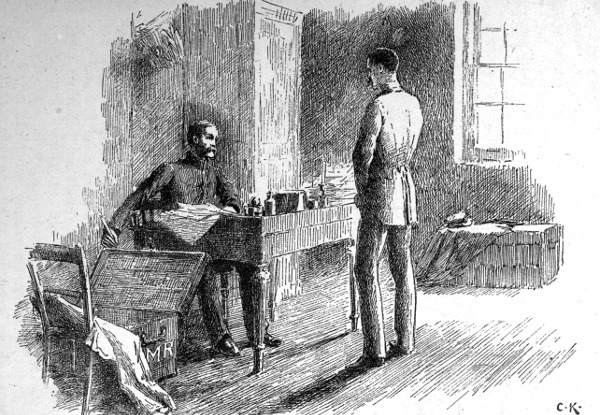 "Here, Gulston, this is more in your line than mine. It's an invitation to a ball, for myself and some of my officers, from Mrs. Mervyn. I have met her twice at the Admiral's, and she is a very charming woman, but as her place is more than twenty miles away and a long distance from a railway station, I certainly do not feel disposed to make the journey. They are, I believe, a good county family. She has two pretty daughters and a son—a captain in the Borderers, who came into garrison about a month ago; so I have no doubt the soldiers will put in a strong appearance."