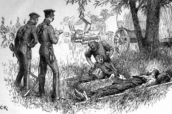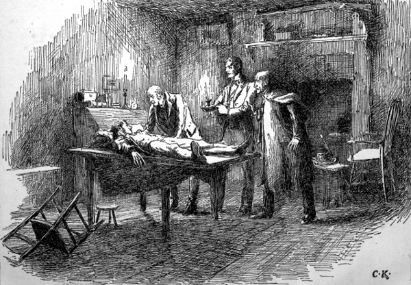 As he ceased speaking the doctor moved quietly up to the side of the stretcher, put his finger on his wrist, and stood there for a minute, then he bent down and listened.