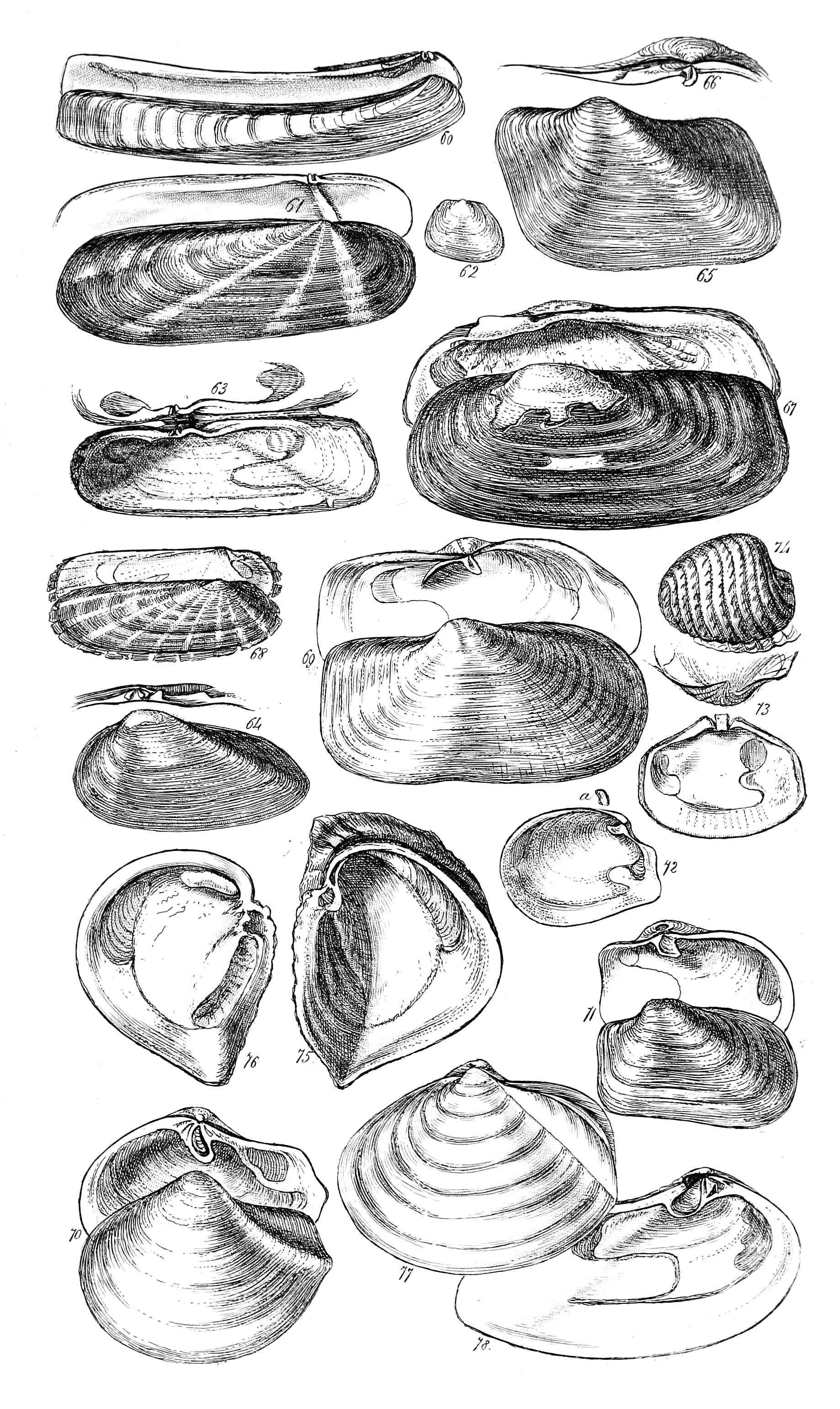 The first, most simple and obvious division of shells, is that which results from the number of separate pieces composing them. Hence the distinction implied by the terms UNIVALVE, or consisting of a single piece; BIVALVE, or composed of two pieces; and MULTIVALVE, or composed of more than two. For an example of univalve, take a common whelk; for a bivalve, take a muscle or a scallop; and for a multivalve, the barnacle, or balanus, found adhering to the common oyster.