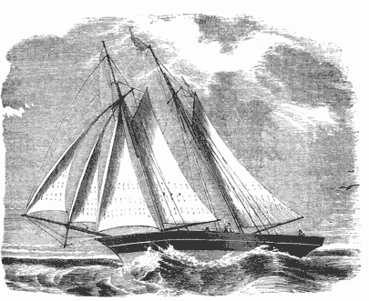 Next they passed a small boat, in which they saw Bell, who shouted,—"Haul in your sheets a bit more,—your top-sails will hold more wind."