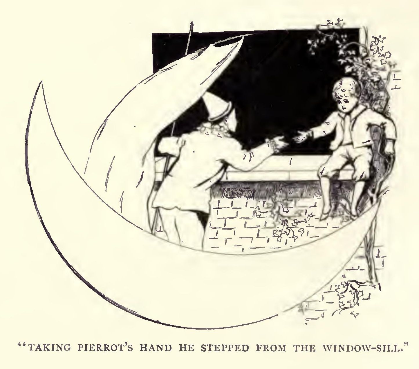 “Not so comfortable as sailing in the Moon, is it?” said a voice by his side, and looking around Boy beheld Pierrot with his banjo under his arm.