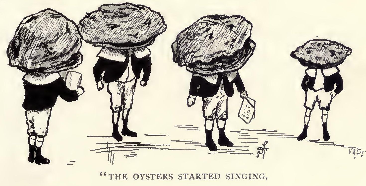 When he at last reached the bottom one, he was greatly disappointed to find that there was nobody in sight. From behind a piece of rock, however, half buried in the sand, came the sound of laughter. “Ha, ha, ha! Hee, hee, hee! Ho, ho!” shouted somebody, and when Boy hurried up to where the sounds proceeded from a curious sight met his eyes.