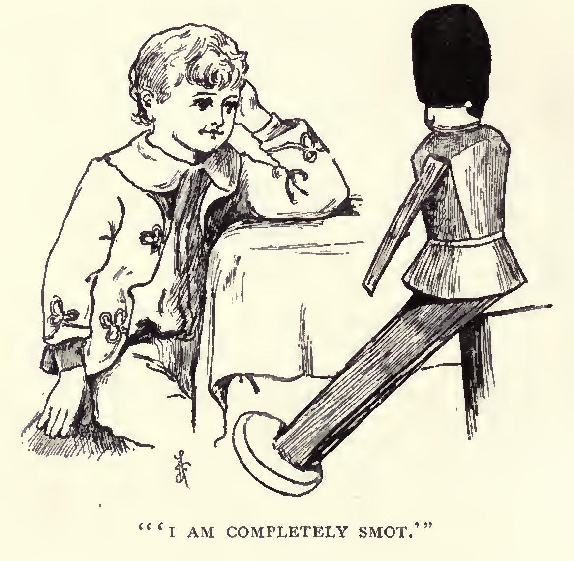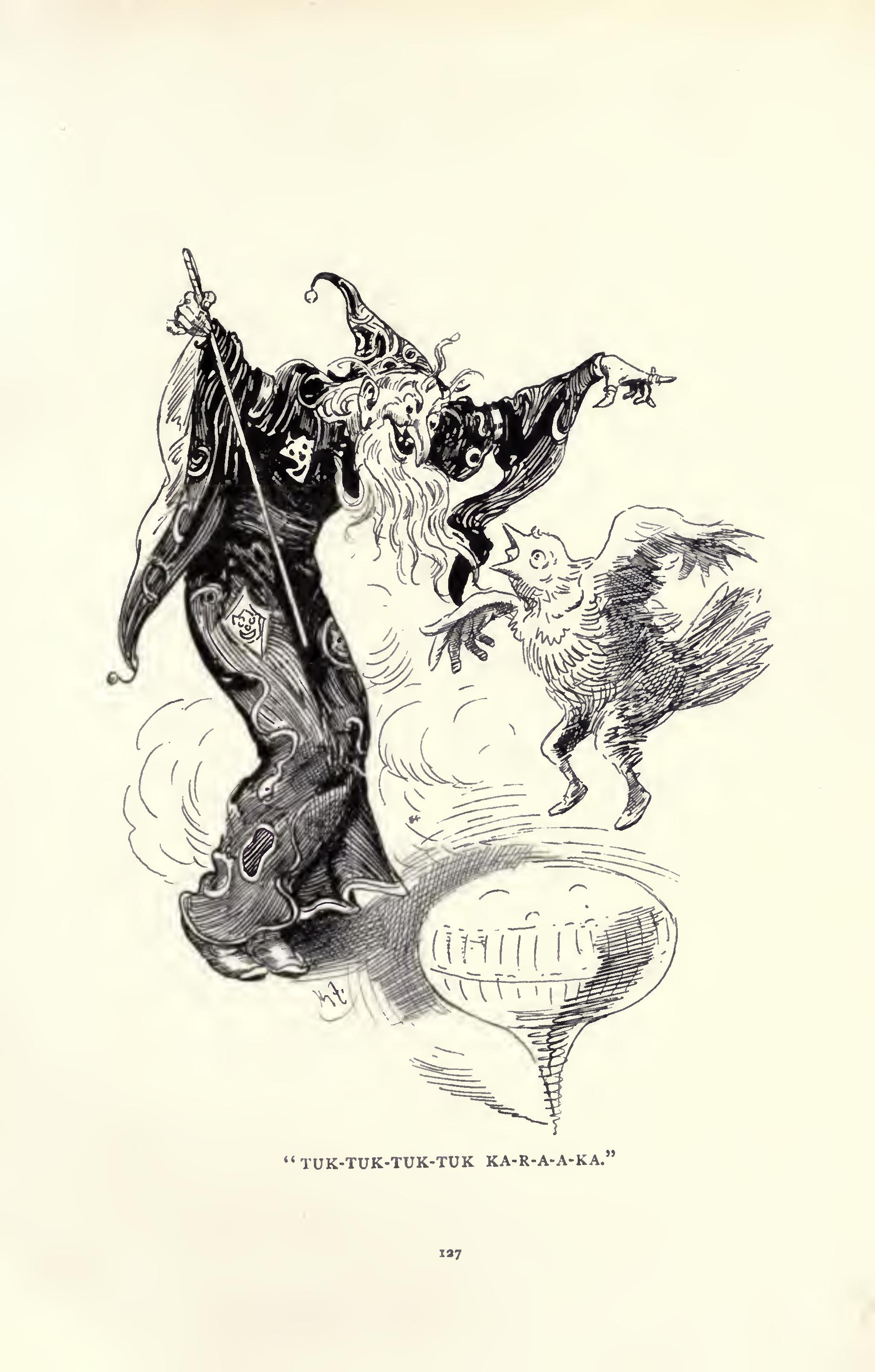 A Grig was pirouetting about on the tip of its tail, giggling and laughing in an insane fashion, whilst a solemn-looking Wooden Soldier was standing at “attention” and looking straight in front of him, not taking the slightest notice of the Grig or anything else.
