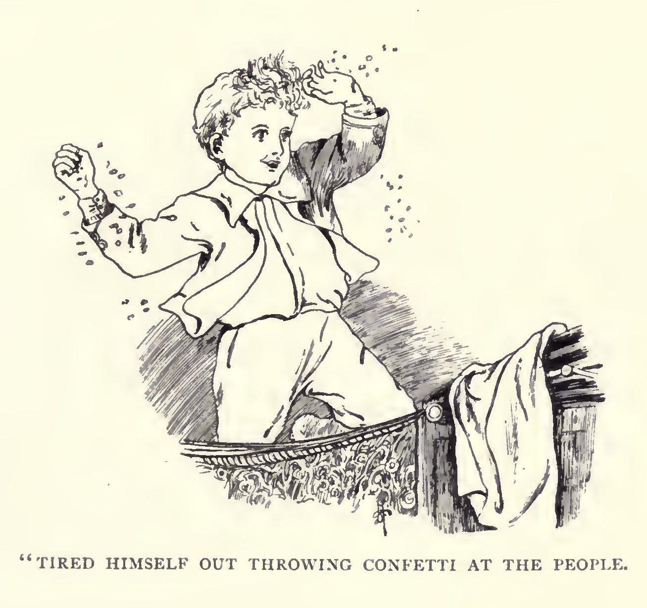 In the evening there was an al fresco concert in the beautiful Palace gardens, which were brilliantly illuminated for the occasion. Amongst the items on the programme were some songs by the “Pierrot Troupe,” and Boy anxiously wondered if his Pierrot would be amongst them. To his great delight he found that he was, and when he stepped forward with his banjo, and began the well-known tune to “The Little Tin Soldier,” Boy applauded vigorously. The words, however, were quite different, and went somehow like this—