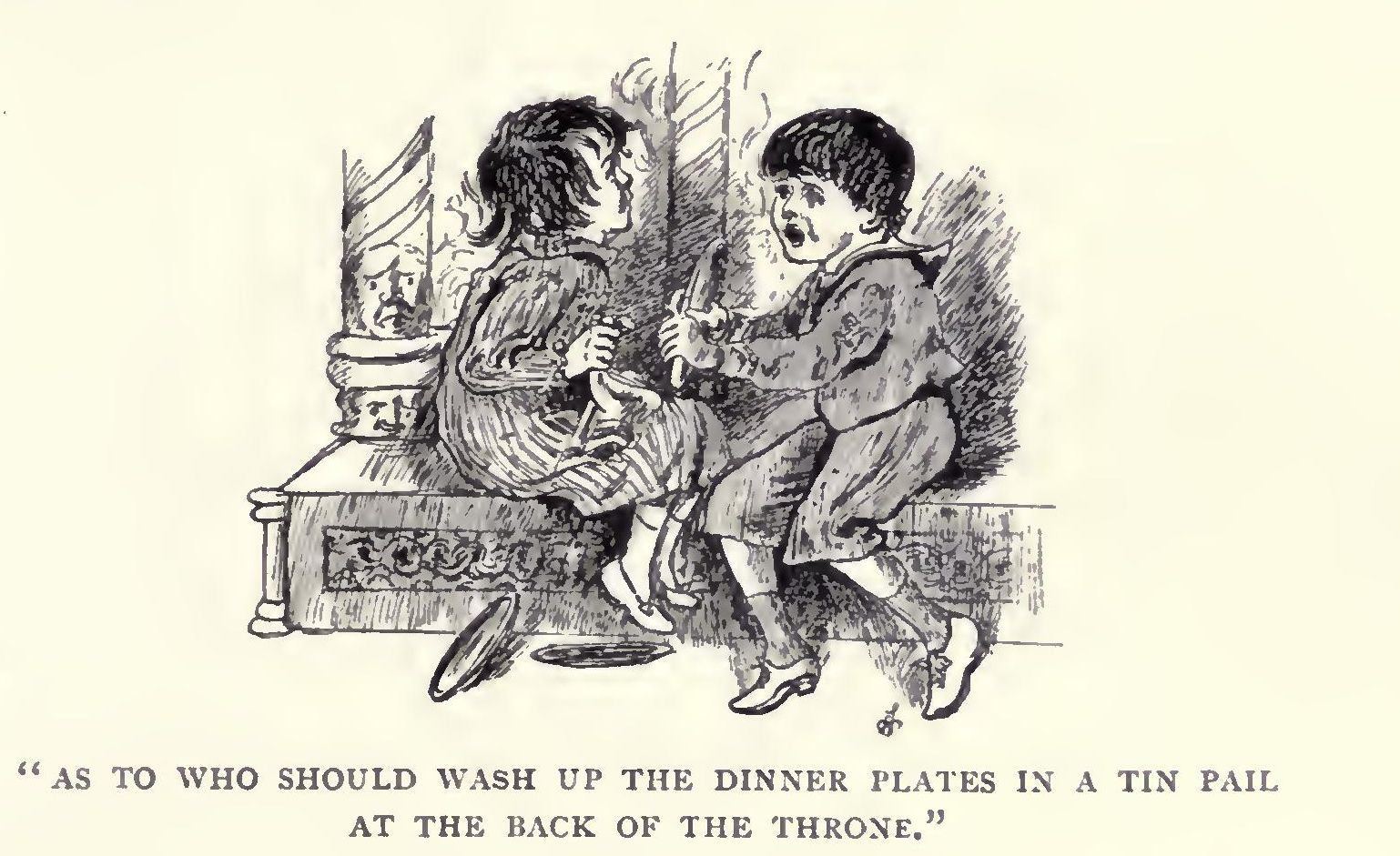 “Yes,” was the rejoinder, “and so am I. Why, ever since my wife has been a Queen she has been as disagreeable as she can possibly be, and insists upon ‘standing on her diginity,’ as she describes it, at home. I mustn’t call her ‘my dear’ if you please, it’s too familiar—‘Your Majesty’ this, and ‘Your Majesty’ that, is what she likes, till I’m tired of hearing it. I shall be right glad when she is plain Jane Eliza Scroggs again, that I shall.”