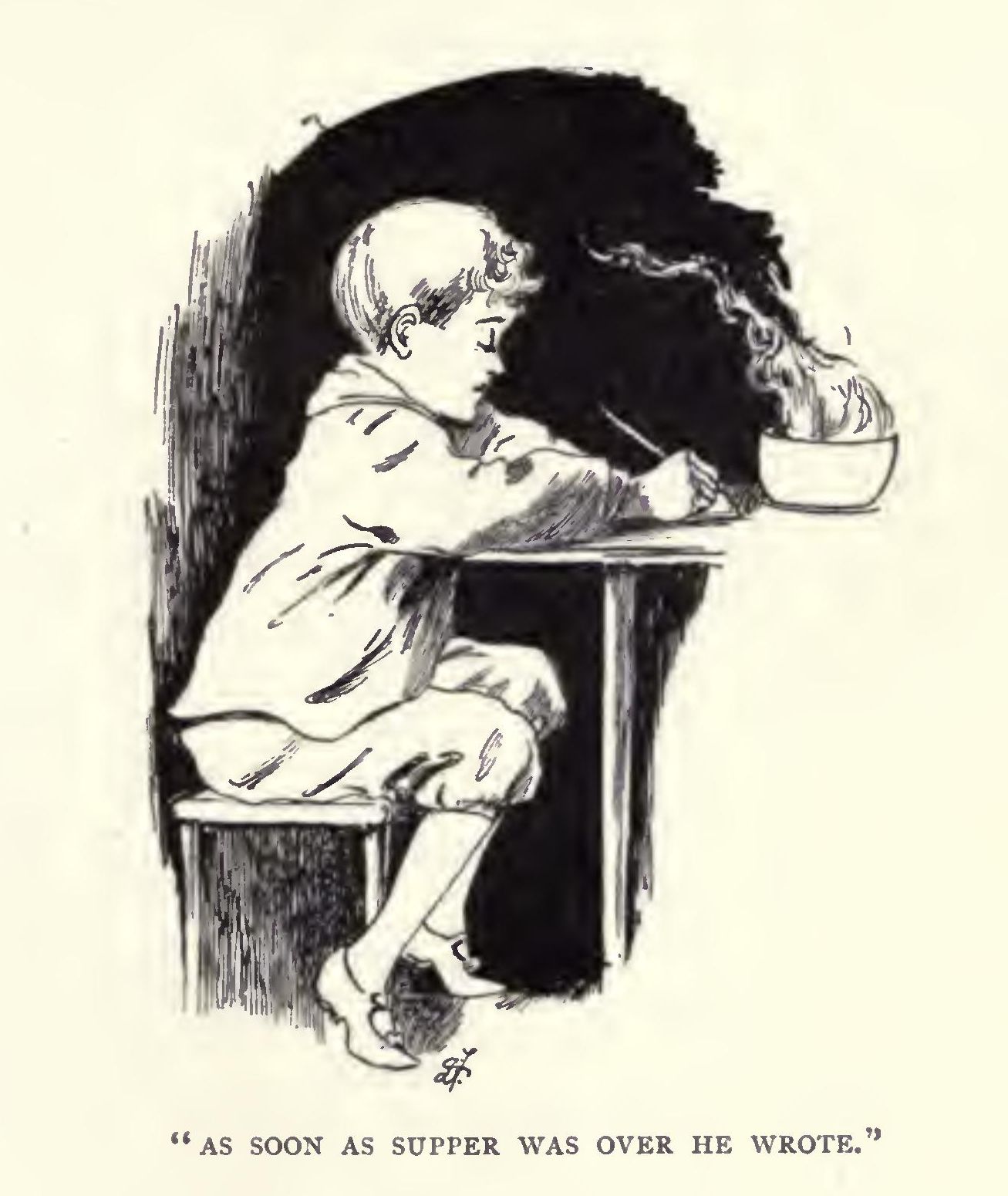Boy had found plenty of amusement in watching the flashing lights out of the window till, as the train got further and further away from the town, the lights became fewer and fewer, and he drew the curtain and settled himself comfortably in a corner with a pillow and a rug.