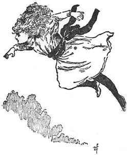 “For I haven’t the remotest idea where I am,” she thought. “I don’t even know how many miles I am from home. I wonder,” she went on, “how many miles one can travel through the air while you count eighty-five. I suppose it depends upon how quickly you are travelling. Perhaps I could make a sum of it and do it by rule of three. Let’s see! If it takes one girl one minute to count sixty, how many miles can a girl and a doll travel through the air while you count eighty-five? I suppose you have to multiply the minutes by the miles, and divide by the number of people,” she thought; and was so very busy trying to do this sum in her head, as she described it, that she did not notice a young man walking down the lane, till he had nearly reached her.