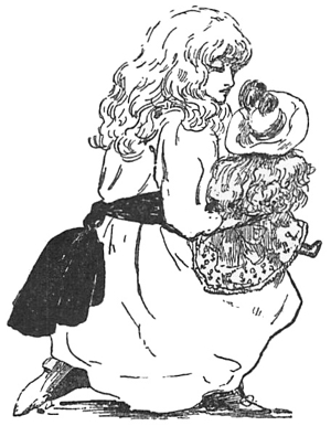 “Oh, you dear old thing!” cried Girlie, jumping up excitedly, and catching Dumpsey Deazil up in her arms. “I always knew that you could talk if you only would, and now at last you are going to do so, just as dolls always do in fairy tale books.”