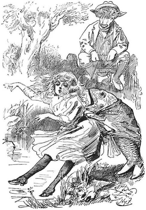 “Take the child,” she cried breathlessly, bundling it into the Royal Microscopist’s arms, and immediately falling back against the Wallypug in a fainting fit.
