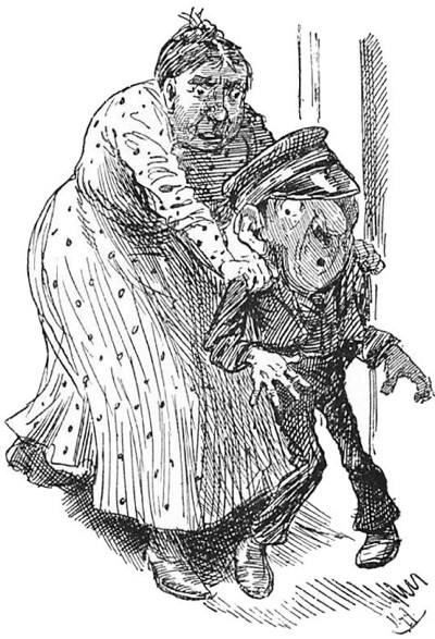 “Well, my dear, don’t let that worry you in the least,” said the Doctor-in-law kindly; “I’ll overlook it this time, and, if you can’t find the sixpence, I don’t mind taking your watch instead. I see that you have a very pretty one.”