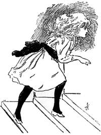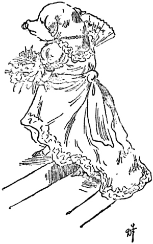 Girlie could scarcely keep from laughing when she first saw him, for he looked such a very comical person; he had long hair, and wore glasses, and carried his hands 20dangling in front of him. (“For all the world like a kangaroo,” thought Girlie.)