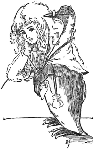 “Whatever is a Goo?” thought Girlie; and, instead of reading the rest of the letter as most people would have done, she shut her eyes and tried to think whether she had ever heard of, or seen such a thing. She was trying hard to remember whether there was such a creature mentioned in her Natural History book, and had just come to the conclusion that she had never read of one, when she heard a little cough from the other end of the room, and, opening her eyes, she saw Dumpsey Deazil, her favourite doll, struggling up from the very uncomfortable position in which she had been lying, with her head in a domino box and her feet on Noah’s Ark.