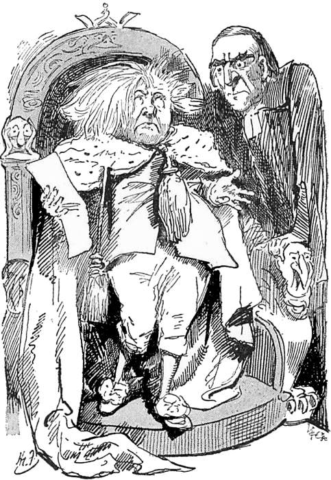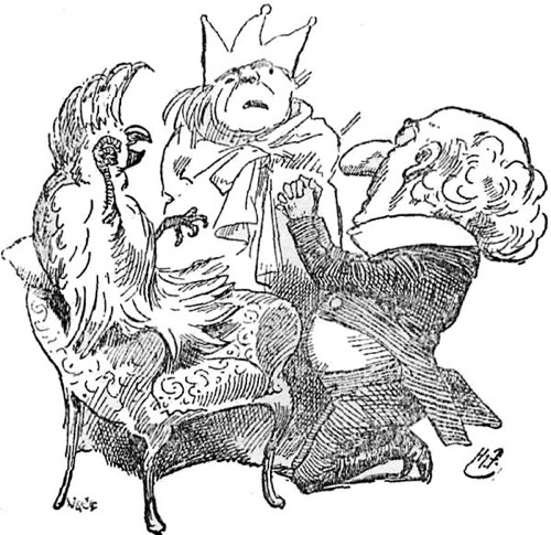 “Thank you,” said the Wallypug quietly. “Now go and issue the Proclamation. As for you two,” he cried, turning to the Doctor-in-law and the Cockatoo, who were trembling violently, “you shall be locked up in separate rooms till the Public Meeting is over and I know what is to be done to you.”