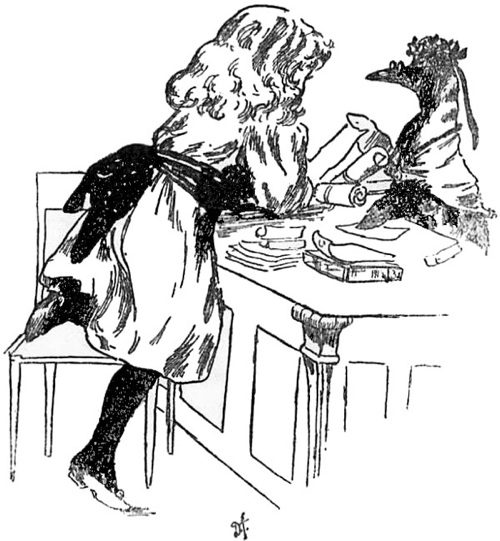 After locking them up, the Wallypug sent for a list of all the people who had been imprisoned for not paying their taxes. Girlie was greatly surprised to see that the King’s Minstrel’s name appeared amongst the rest.