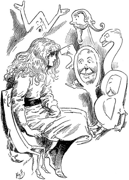 Before the meeting was over, the Husher formally asked the Wallypug for his permission to propose to one of his sisters, and caused some little amusement by not being able to remember which one it was that he was in love with. He at last decided, however, that it must be Belinda. The Wallypug willingly gave his consent, and the meeting then dispersed, and Girlie followed the Wallypug into the Palace again, the Royal Microscopist and the Husher being invited to join them.