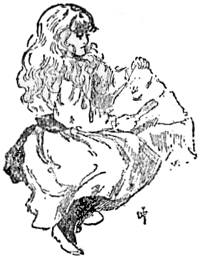 Girlie wisely did not take the slightest notice of this rude remark, but stood up and tried to curtsey, as she had been taught to do before beginning a recitation; curtseying in a balloon, though, while it is going up, is a most difficult thing to do, and poor Girlie did not succeed very well in her attempt, for she first stumbled forward into the Wallypug’s arms and then, trying to recover her balance, she fell back and sat plump into the Royal Microscopist’s lap.