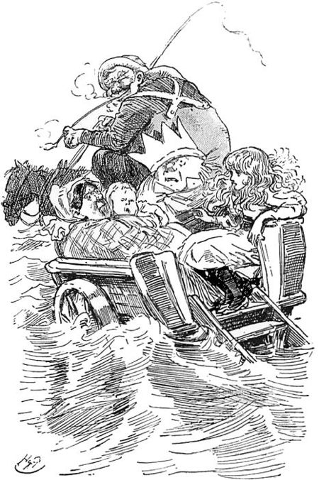 The Bathing-machine Woman screamed again and the Ancient Mariner looked greatly alarmed, too, till the Wallypug assured them that he did not mean to drop them out of the balloon, but only to set them down at their own homes when they reached them.
