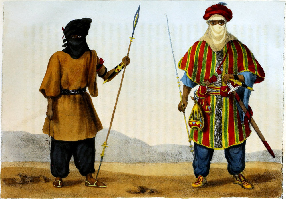 - Tuarick (an African tribe), costume of, 109, 110. Arms, 110. Superstitions, 111. Language, ibid. Their extraordinary aversion to washing, ibid. Religion, 112. Notice of their chief towns, 113. Their[382] government, ibid. Trade, 114. Their extraordinary mode of travelling on camels, 114, 115. Articles of commerce between them and Tuat, 159, 160. Anecdote of one, 197.
