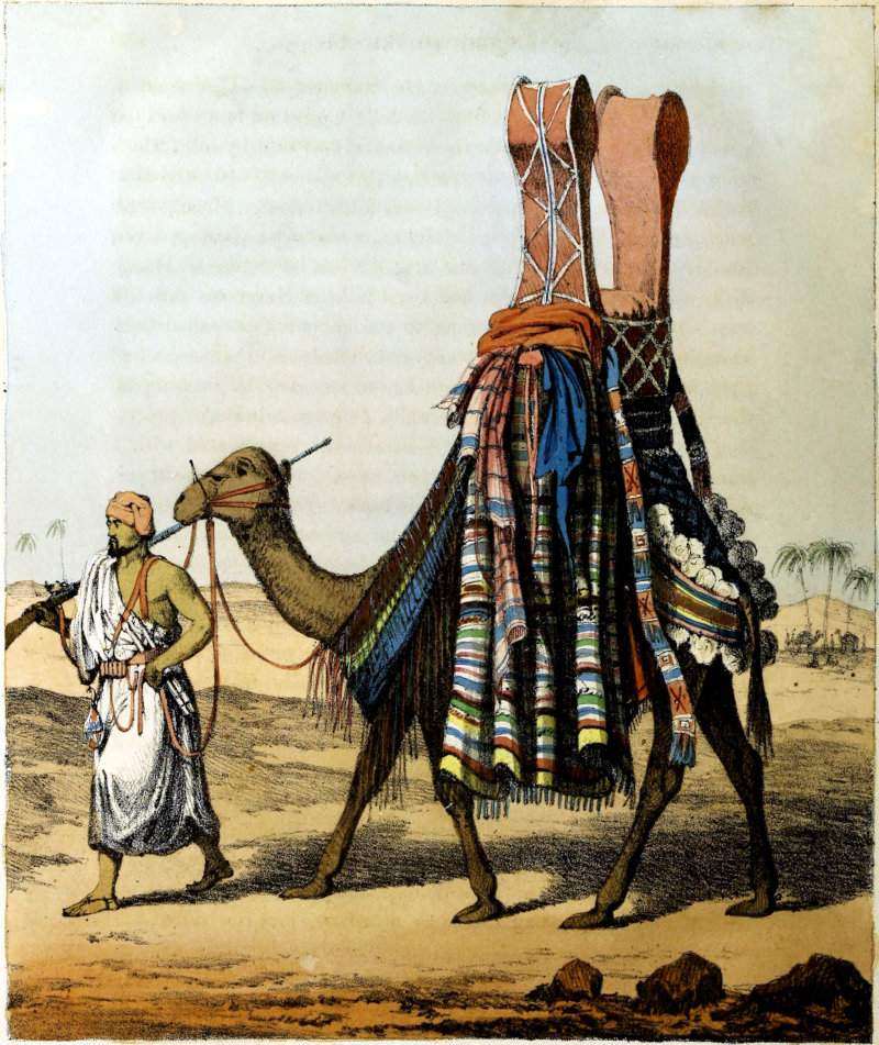 - Travelling, mode of, across the deserts, 91—93. On camels, extraordinary mode of, 114.