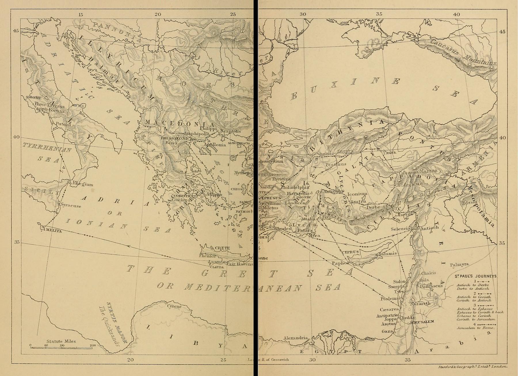 | 1135 ‒ | Meaning then not merely that portion of the Mediterranean, to which it is now applied, but all that which lay between Sicily and Malta on the west, and Greece and Crete on the east. See Smith’s Voyage and Shipwreck. |