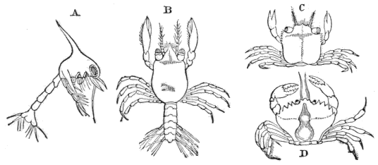 | How are they distinguished from the Insects?—Barnacles and Acorn-shells.—Siphonostomata.—Entomostraca.—King-Crab.—Edriophthalmia.—Sandhoppers.—Thoracostraca.—Compound Eye of the higher Crustaceans.—Respiratory Apparatus of the Decapods.—Digestive Organs.—Chelæ or Pincers.—Distribution of Crabs.—Land Crabs.—The Calling Crab.—Modifications of the Legs in different species.—The Pinna and Pinnotheres.—Hermit Crabs.—The Lobster.—The Cocoa-nut Crab.—The Shrimp.—Moulting Process.—Metamorphoses of Crabs.—Victims and Enemies of the Crustaceans.—Their Fecundity.—Marine Spiders and Insects | 243 |