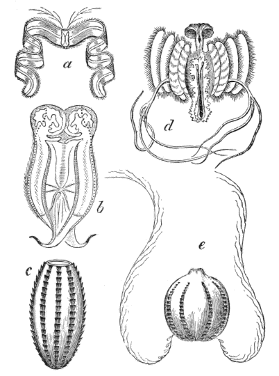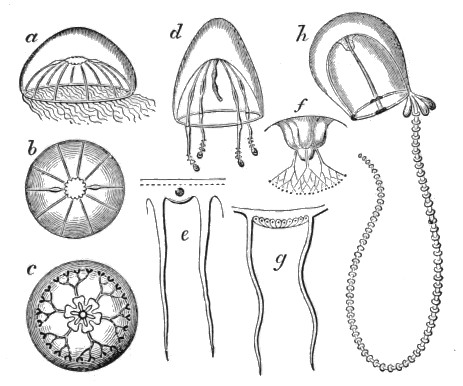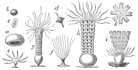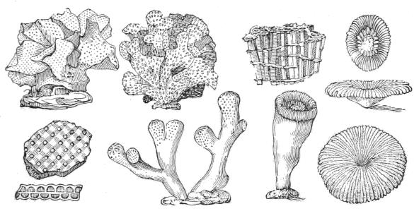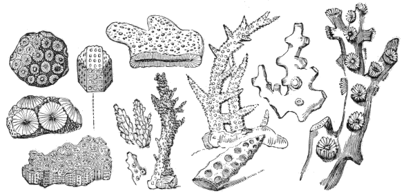 | Thread-cells or Urticating Organs.—Sertulariæ.—Campanulariadæ.—Hydrozoic Acalephæ.—Medusidæ.—Lucernariadæ.—Calycophoridæ.—The Velella.—The Portuguese Man-of-war.—Anecdote of a Prussian Sailor.—Alternating Fixed and Free-swimming Generations of Hydrozoa.—Actinozoa.—Ctenophora.—Their Beautiful Construction.—Sea-anemones.—Dead Man's Toes.—Sea-pens.—Sea-rods.—Red Coral.—Coral Fishery.—Isis hippuris.—Tropical Lithophytes.—History of the Coral Islands.—Darwin's Theory of their Formation.—The progress of their Growth above the level of the Sea | 345 |