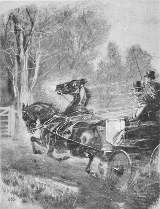 Just then the object of our joint praises, startled, pardonably enough, by a tinker’s caravan that had taken up a conspicuous position on the Green, shied violently away from the alarming object, and did not recover its equanimity without a succession of bounds and plunges, such as would have unseated most men ignominiously, but which produced no perceptible effect on the demeanour of the experienced Tips, his affability only becoming, if possible, more conspicuous than before.