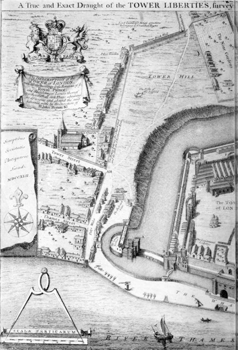 A True and Exact Draught of the TOWER LIBERTIES, survey in the year 1597 by Gulielmus Haiward and J. Gascoyne.