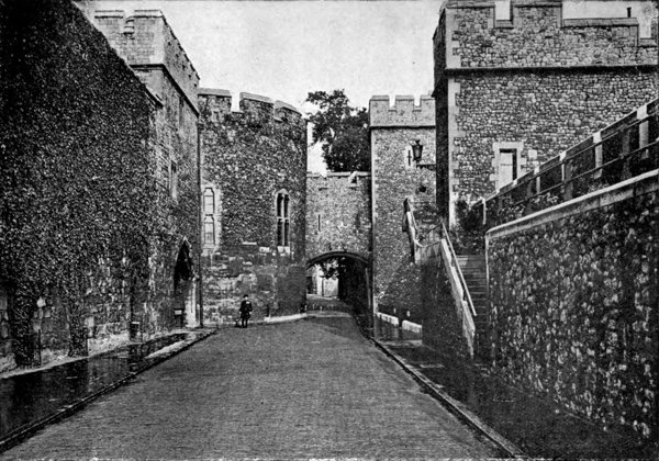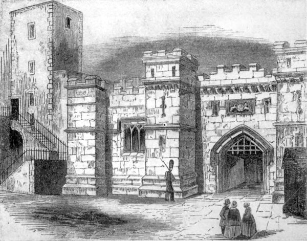 In ancient days the Wakefield Tower, then named the Hall, formed the entrance to the Royal Palace, which fell into decay during the reign of Queen Elizabeth. She having been a prisoner in the Tower as a Princess, had conceived such a horror for the place that when she became Queen she refused to live there. In previous reigns the King or Queen always lived in the Tower before their Coronation, and thence proceeded in state, preceded by the Knights of the Bath, to Westminster. In the Wakefield Tower is still a small chapel or oratory which was used as a private place of devotion by the Monarch when in residence at the Palace. In this little chapel, whilst kneeling at 24his prayers, Henry VI was murdered by Richard of Gloucester.