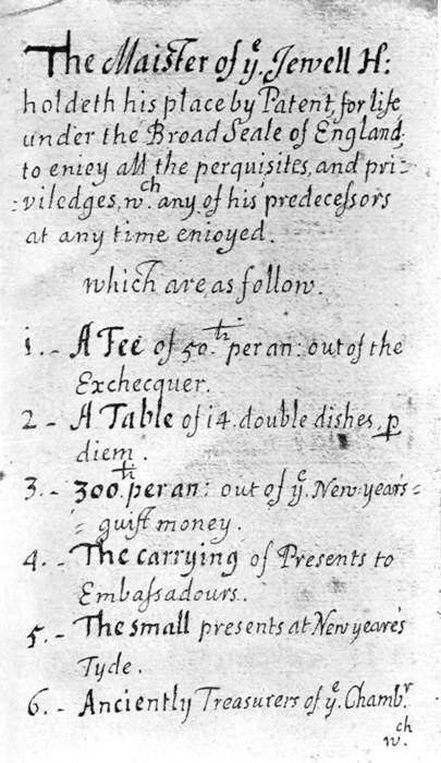 26. Named at various periods, Master and Treasurer of the Jewel House, Keeper of the Regalia, Keeper of the Crown Jewels, and as now Keeper of the Jewel House.