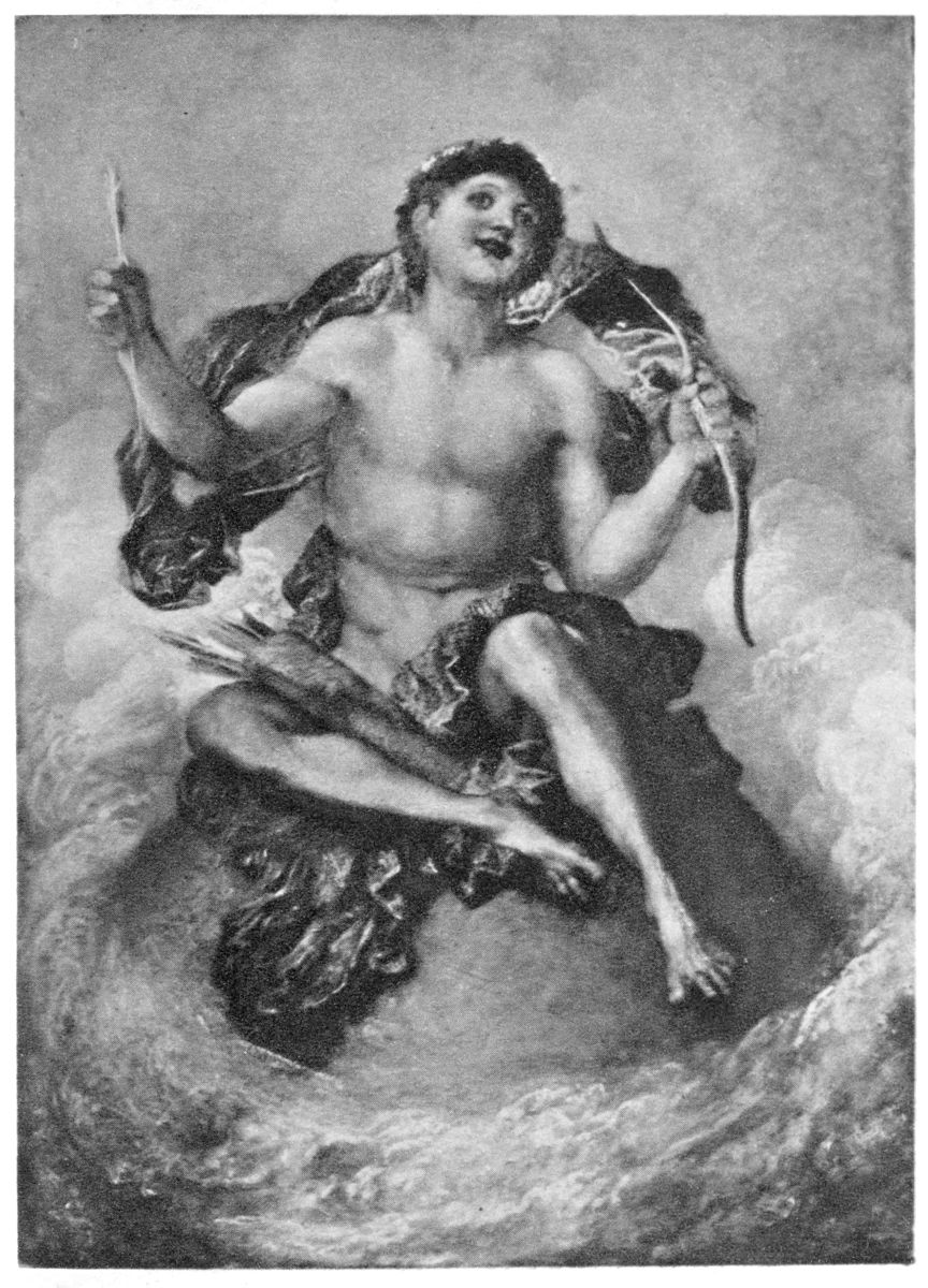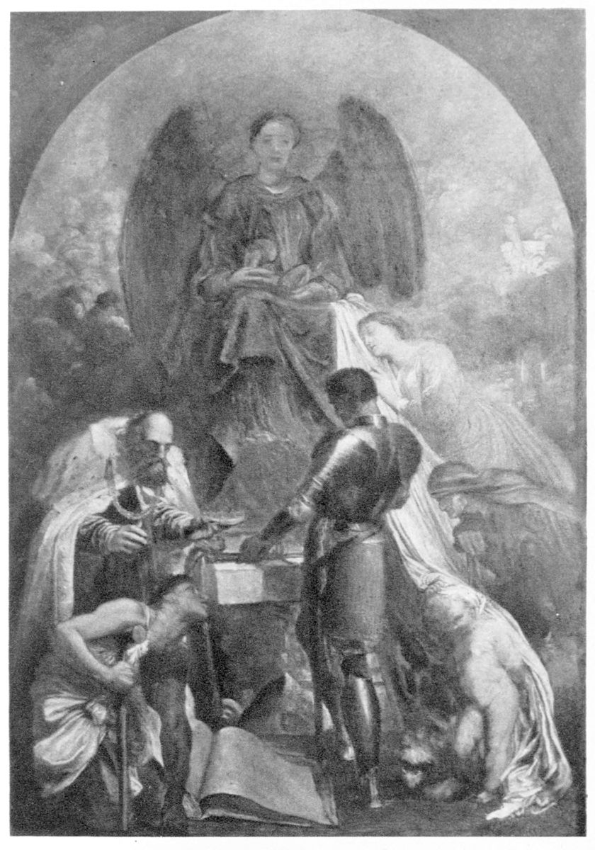 Of the ancestry of Watts so little is known that it resolves itself into one hypothesis: a hypothesis which brings with it a suggestion, a suggestion employed by almost all his existing biographers, but a suggestion which cannot, I think, pass unchallenged, although the matter may appear somewhat theoretic and remote. Watts was born in London, but his family had in the previous generation come from Hereford. The vast amount of Welsh blood which is by the nature of the case to be found in Herefordshire has led to the statement that Watts is racially a Celt, which is very probably true. But it is also said, in almost every notice of his life and work, that the Celtic spirit can be detected in his painting, that the Celtic principle of mysticism is a characteristic of his artistic conceptions. It is in no idly antagonistic spirit that I venture to doubt this most profoundly.