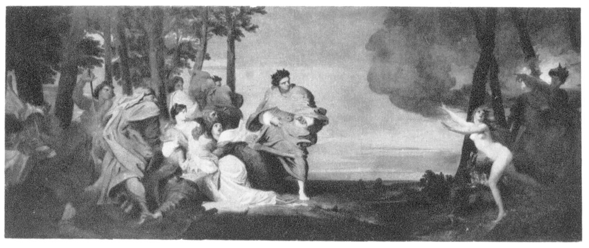 So long as we conceive that it is, fundamentally, the symbolizing of literature in paint, we shall certainly misunderstand it and the rare and peculiar merits, both technical and philosophical, which really characterize it. If the ordinary spectator at the art galleries finds himself, let us say, opposite a picture of a dancing flower-crowned figure in a rose-coloured robe, he feels a definite curiosity to know the title, looks it up in the catalogue, and finds that it is called, let us say, “Hope.” He is immediately satisfied, as he would have been if the title had run “Portrait of Lady Warwick,” a “View of Kilchurn Castle.” It represents a certain definite thing, the word “hope.” But what does the word “hope” represent? It represents only a broken instantaneous glimpse of something that is immeasurably older and wilder