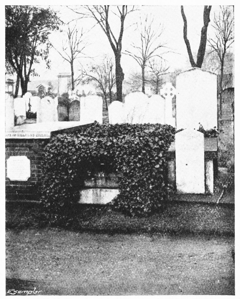 In the year 1861 the firm of Jackson & Graham built for Thackeray the beautiful house at No. 2, Palace Green, Kensington, which alone of all his homes has the Society of Arts oval commemorative tablet inserted in its wall. An old house stood on the site at the time of purchase, but after careful consideration Thackeray wisely gave up the idea of repairing and adding to it, and erected in its place a fine mansion of red brick with stone facings in the style of Queen Anne. At this period, besides working for the Cornhill, Thackeray was writing “Denis Duval,” his last book, which remained unfinished. After several severe attacks of illness, the novelist died at his residence in Palace Green on December 23rd, 1863, and was interred at Kensal Green Cemetery on the 30th of the month. The Middle Temple, of which he was a member, requested that they might be allowed to bury him in the Temple, near the grave of Goldsmith. The offer was, however, declined. A bust of Thackeray by his friend, Baron Marochetti, was placed in Westminster Abbey.