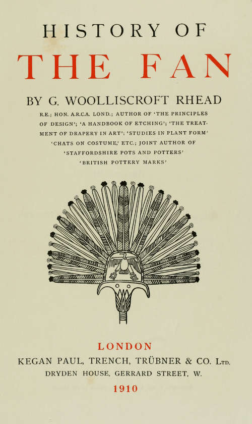 My thanks are also due to the officials of the various Museums, those of the Print Room of the British, and the National Art Library, Victoria and Albert Museums; to Sir C. Purdon Clarke, C.I.E., F.S.A., and his son, Mr. Stanley Clarke of the India Museum; Dr. Peter Jessen of the Kunstgewerbe Museum, Berlin; Professor Pazaurek, Stuttgart; Dr. Hans W. Singer; to Sir George Birdwood, K.C.I.E., C.S.I., who has kindly read the three chapters on ancient fans; to Professor W. M. Flinders Petrie, D.C.L.; Mr. W. Holman Hunt, O.M., R.W.S.; Sir L. Alma-Tadema, O.M., R.A.; the Rev. J. Foster, D.C.L.; the Clerk of the Worshipful Company of Fanmakers; the Librarian at Welbeck; Mr. Wilson Crewdson; Mr. W. Harding Smith; Mr. W. L. Behrens; Mr. R. Phené Spiers; Mr. G. F. Clausen; Mr. J. Ettlinger; Mons. J. Duvelleroy; Mr. H. Granville Fell; Mr. Frank Brangwyn, A.R.A.; Mr. Talbot Hughes; Mr. Frank Falkner, for help in various ways; and last, though by no means least, to Mrs. E. P. Medley, for most valuable assistance in translation.