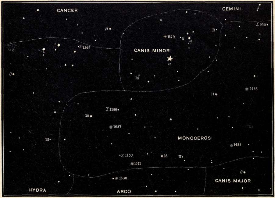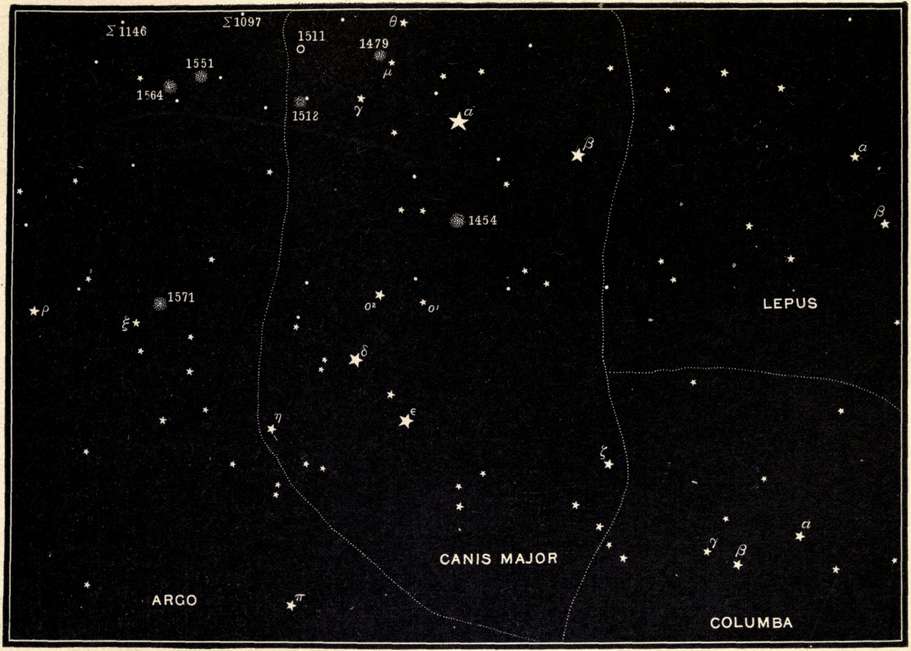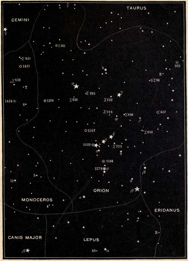 | Orion and its wonders, Lepus, Canis Major, Argo, Monoceros, Canis Minor, and the Head of Hydra. | |